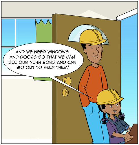 People don’t build houses without windows and doors. You would be stuck inside the house if they did! Windows allow you to look outside and see the light of God’s promises and the beauty of his creation. We can also see the brokenness in God’s world. The door allows us to step out from our home and into a world that needs our help and God’s restoration. God is calling your family to find ways to serve the neighbors and friends in your community faithfully.