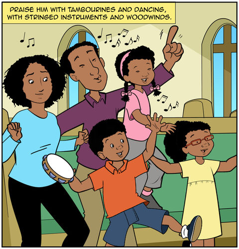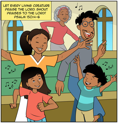God loves it when we praise him with joy, just like David did. We can praise God and thank him for all the good things he gives us through dancing. When we show God how much we love him, it makes him happy too! Next time you feel like dancing, remember this: your dance can give glory to God! Tell him everything you feel with dance, and put your whole self into worship!