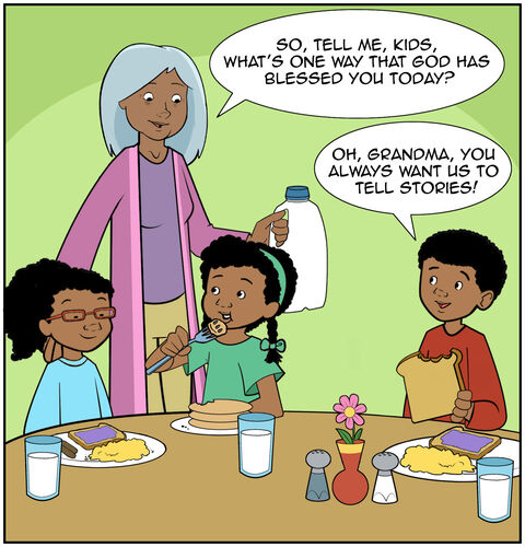Andy’s grandpa loves to ask him, “What’s one way that God has blessed you today?” He listens carefully, shares his stories, and enjoys their conversations. But sometimes, Andy just wants to answer quickly and move on. Andy sometimes rolls his eyes when Grandpa asks him for a real story instead of just one word.