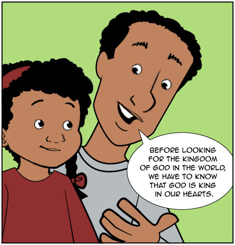 You might recognize the words in today’s Bible reading as the Lord’s prayer. Jesus taught it to his followers, and one line says to pray: “Come and set up your kingdom so that everyone on earth will obey you, as you are obeyed in heaven.” When you pray that prayer, you don’t just sit back and wait for God to do all the work. You get to be a part of making God's kingdom real right now! Being kingdom-minded means you recognize that God is in charge of everything, and you choose to follow God's ways because you love him!