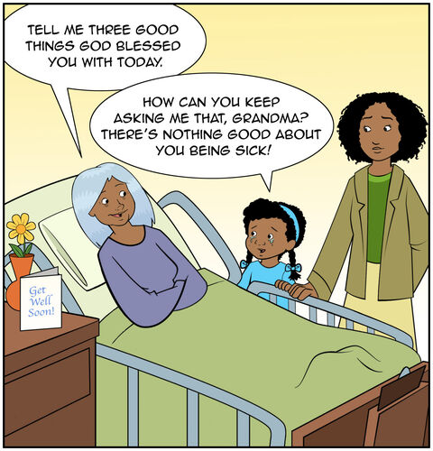 Before Casey and her mom entered her grandma’s hospital room, she already knew that Grandma would ask, “Tell me three good things God blessed you with today.”