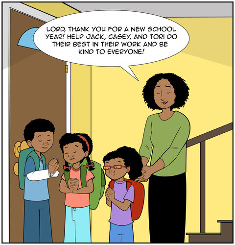 Your job as a student is important! You learn many new things each day and year after year at school. Colossians 3:23-24 says that whatever you do, you should work at it with all your heart, as working for the Lord. That’s true for everything you do at school. Think of it as more than just your daily schoolwork and homework. While at school, you should do all things as if you were doing them for God. When you are trying your best at math, it is the Lord you are serving. When you have a positive attitude toward an assignment you dislike, you work at it with all your heart. When you include someone who looks lonely, you are serving him.
